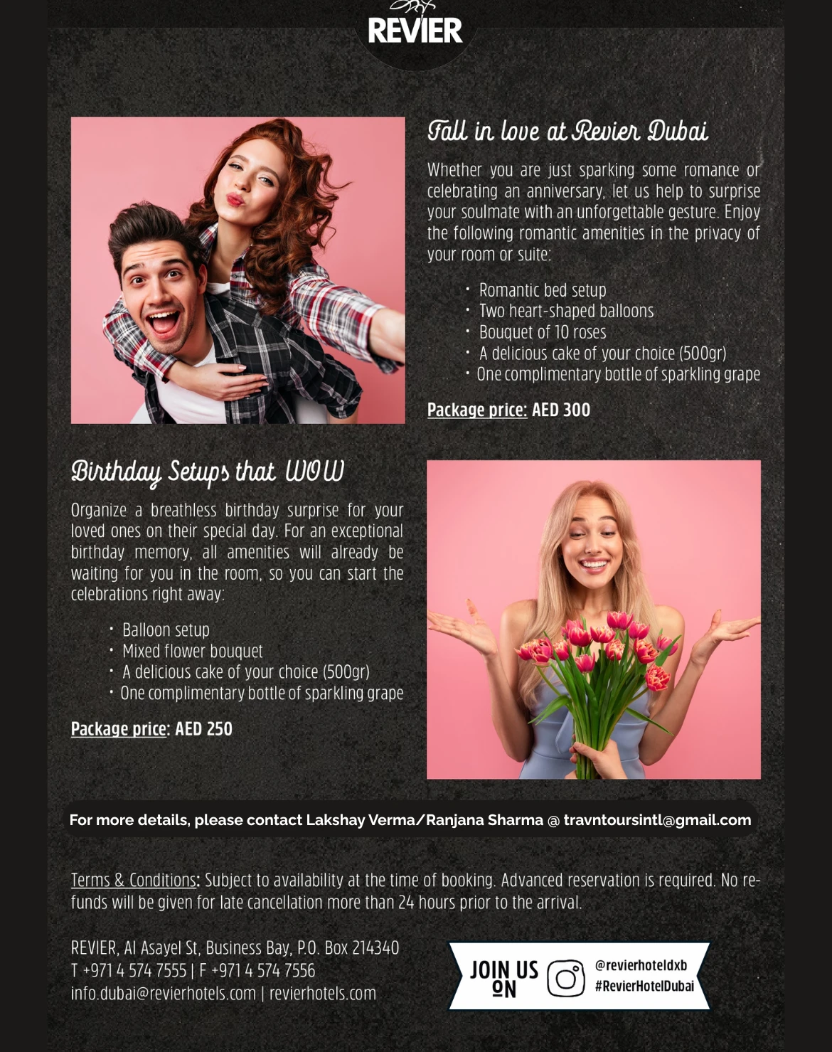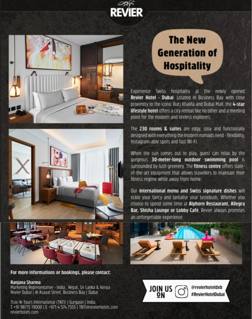 India Marketing Representative for Hotel REVIER, Business Bay, Dubai.